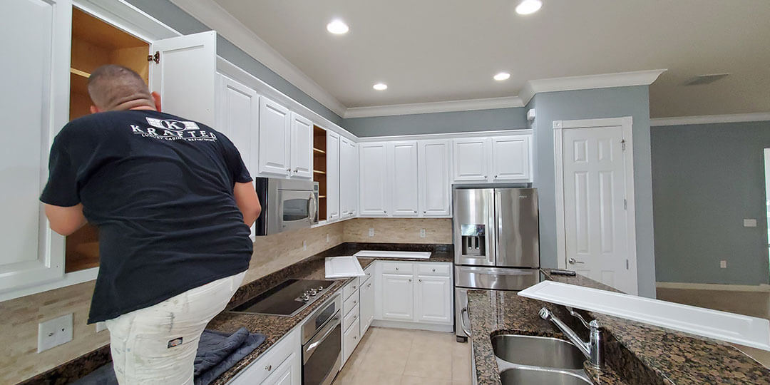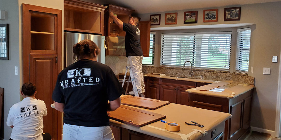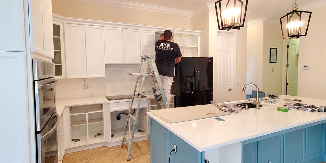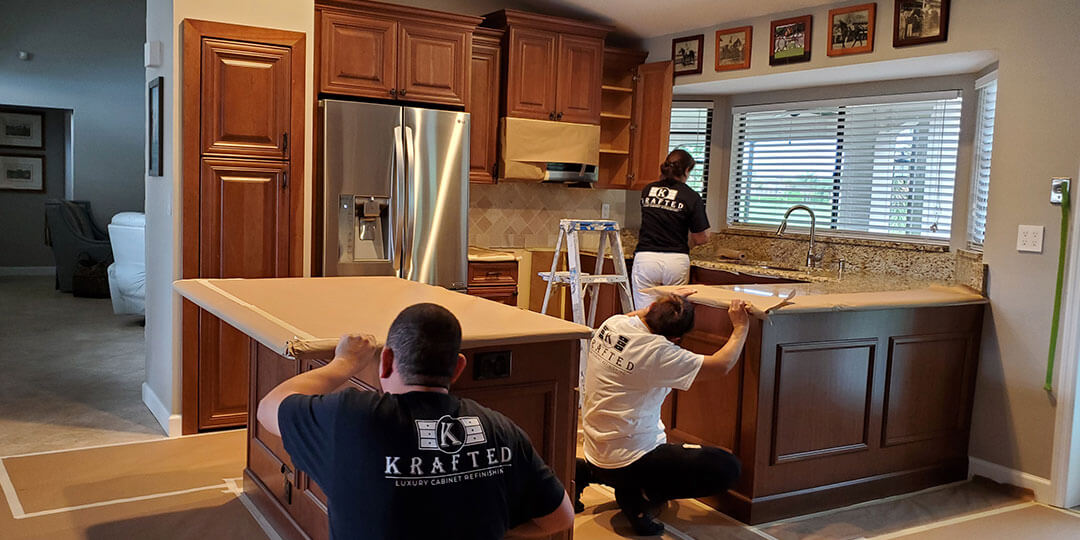 At Krafted we know that your house is your castle. That is why we are committed to bring back the opulent luxury, warm and comfort of your living spaces transforming your cabinets to a factory showroom finish.