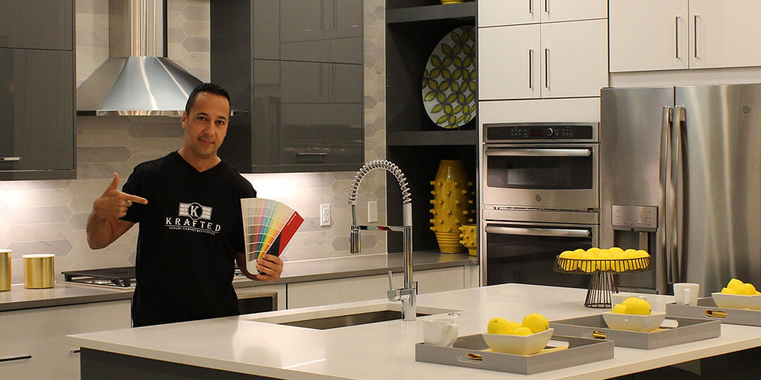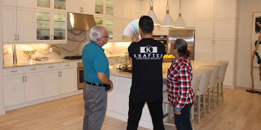 At Krafted our color consultants specialize in the complex effects of color palettes, shades and coordinated combinations to create and design the perfect à la carte custom color scheme solution that fits your vision and your personality when refinishing your cabinets.